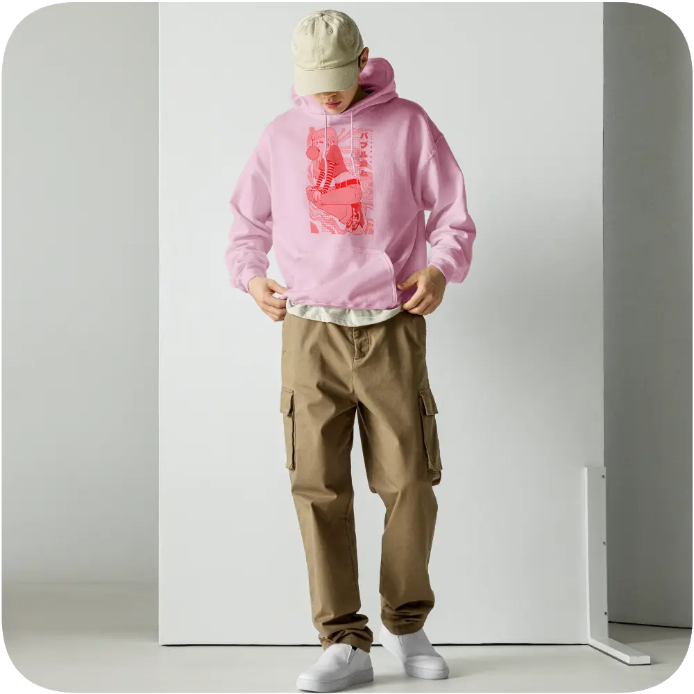 Stray Anime Girl Streetwear Design Pink Hoodie