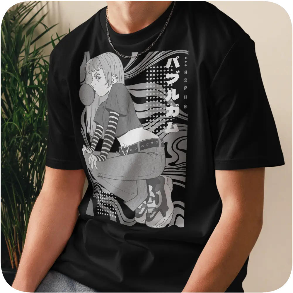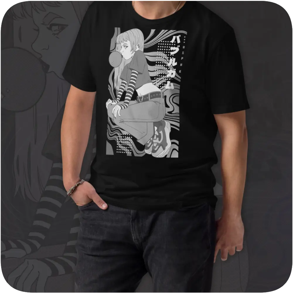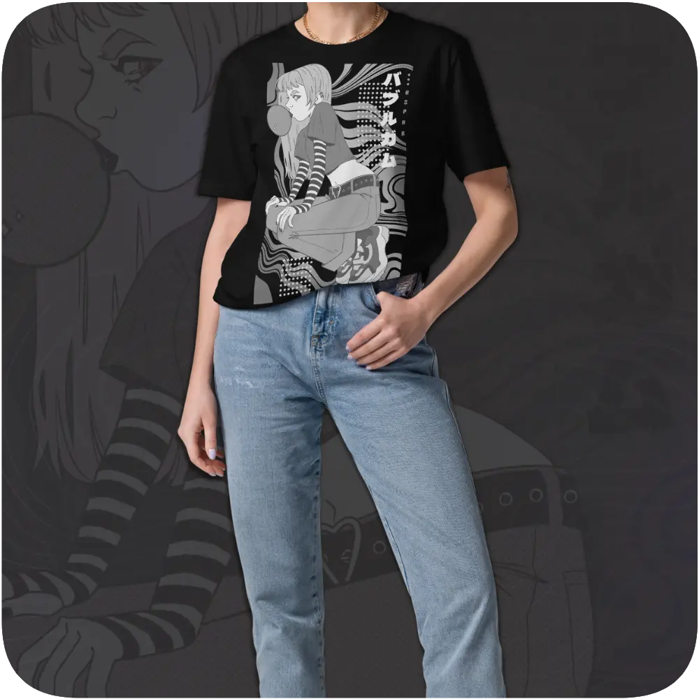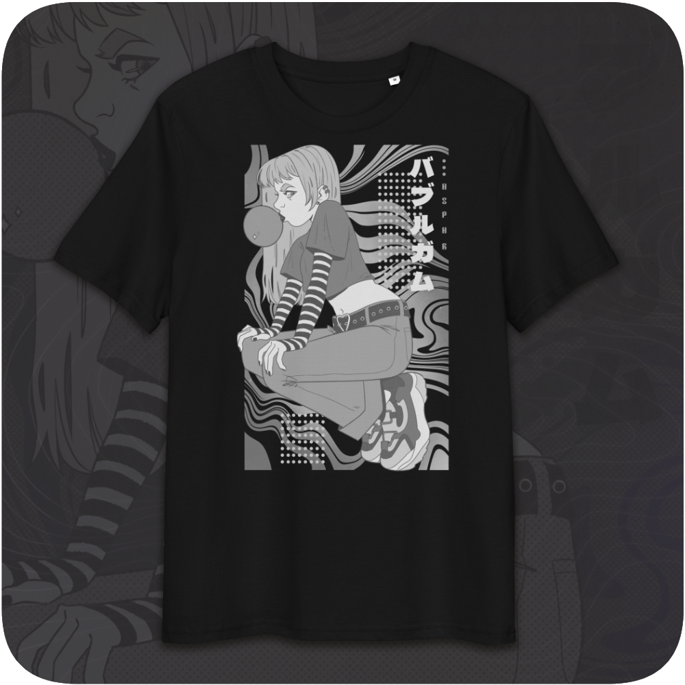 Featuring stylised girl on graphic background inspired by urban street-wear designs.